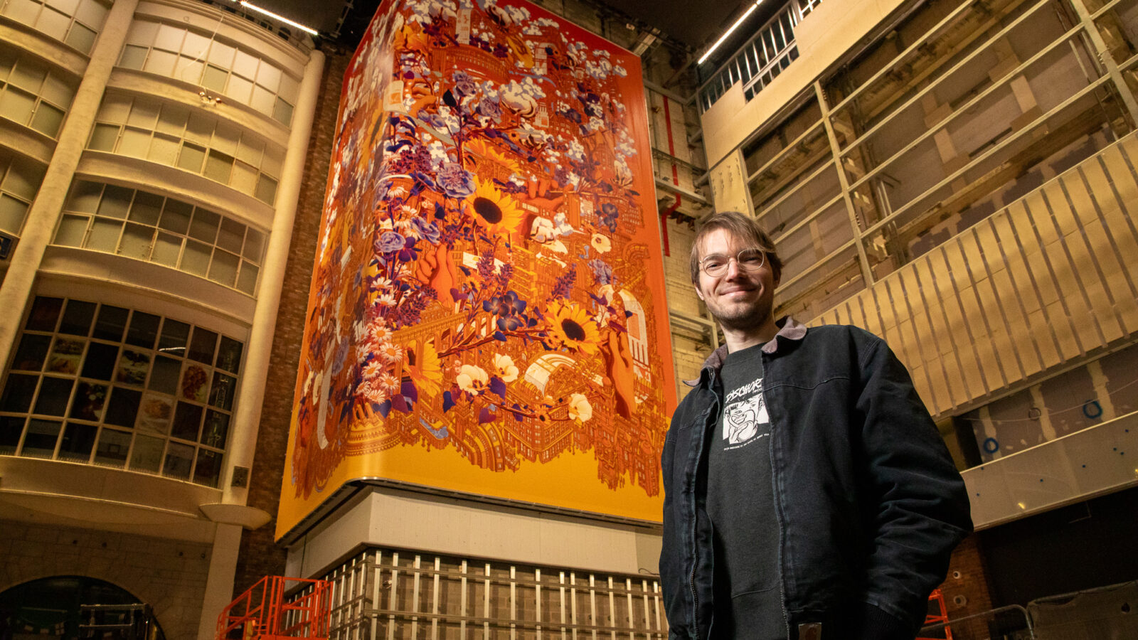 The artwork now takes pride of place on 210 square metres of space on the Nuffield Tower in the Printworks pump yard for all to admire. It is the first completed element of the overall, ongoing Printworks refurbishment which will be unveiled in spring 2024.